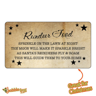 Reindeer Food Labels | Etsy Reindeer food labels (1,578 Results) Price ($) Magic Reindeer Food Tag Printable, Magic Reindeer Food Card, Kid Christmas Tag, DIY Class Gift Tag, Christmas Eve, Instant Download ALMemorableCreations (994) $2.70 $3.00 (10% off) Reindeer Food Printable - Printable Holiday Treat Bag Toppers - Magic Reindeer Food Printable - PDF - Instant Download
