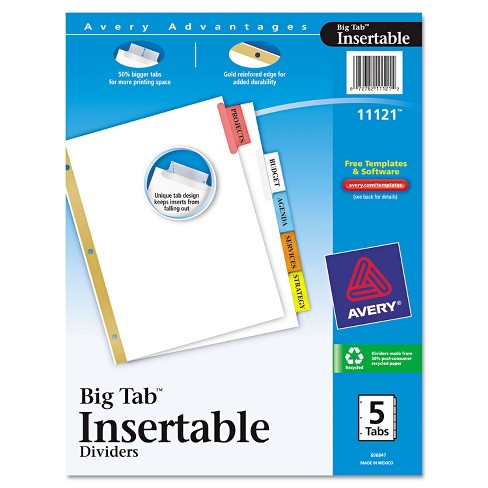 Avery® - Labels - Big Tab™ Write-on 20% Recycled Tab Dividers with Erasable Laminated Tabs - 11in. d x 8.5in. w - 8/St