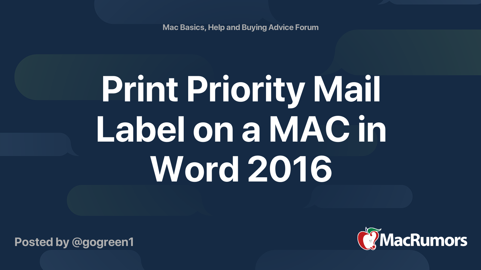 Accessing a template in Microsoft Word for PC - Staples Inc. Accessing a template in Microsoft Word® for Mac® 1. Open a new blank document in Microsoft Word for Mac (You can open a new blank document by pressing Command + N). 2. Next choose Tools. 3. Then select Labels to open the Labels dialog window. 4. Click the Options button. 5. In the Label Options dialog window, choose Avery® Standard for Label ... How to make a sheet of labels on Microsoft Word? : mac - reddit Can't really help much with Word, but it shouldn't be an incompatibility. Microsoft makes Word for the Mac. Then again, it might be easier to use the Avery label making web app from Avery. Also, if it helps, if you're printing contact mailing labels, that function is built into the stock Contacts app. How to Create Labels on an iMac | Your Business Click on the group containing the addresses for which you want to create labels. Click "File" > "Print." The print window will appear. Step 7 Click on the "Style" pull-down menu and select "Mailing... Create and print labels - support.microsoft.com Create and print a page of identical labels Go to Mailings > Labels. Select Options and choose a label vendor and product to use. Select OK. If you don't see your product number, select New Label and configure a custom label. Type an address or other information in the Address box (text only).
