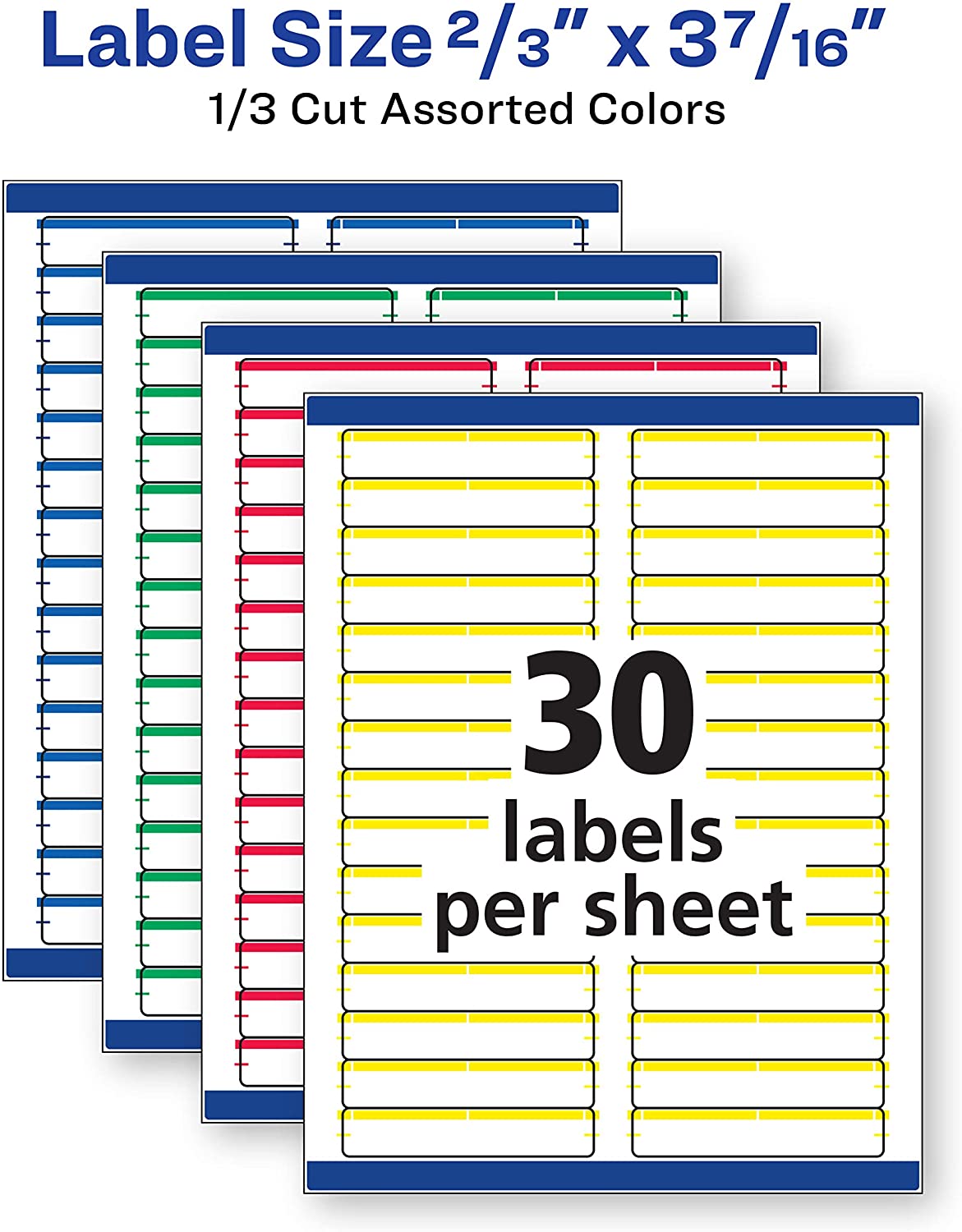 Avery File Folder Labels in Assorted Colors for Laser and Inkjet Printers with TrueBlock Technology, 0.67 x 3.43 Inches, Pack of 750 (5266)(Packaging ...